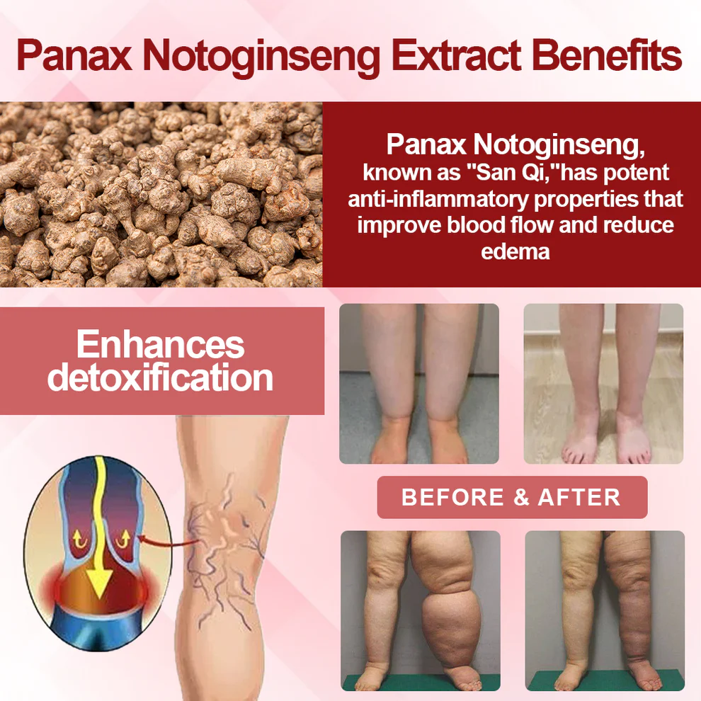 Clinical studies show that ginsenosides and notoginsenosides—active compounds in Panax Notoginseng—offer powerful anti-inflammatory and circulation-enhancing benefits. They help strengthen capillary walls, reduce fluid buildup, and ease swelling. Our ATTDX® formula with 5% Panax Notoginseng, combined with Angelica Root, plus two other key botanicals, supports healthy blood flow, improves lymphatic drainage, and provides effective relief from edema, fluid retention, and varicose veins.