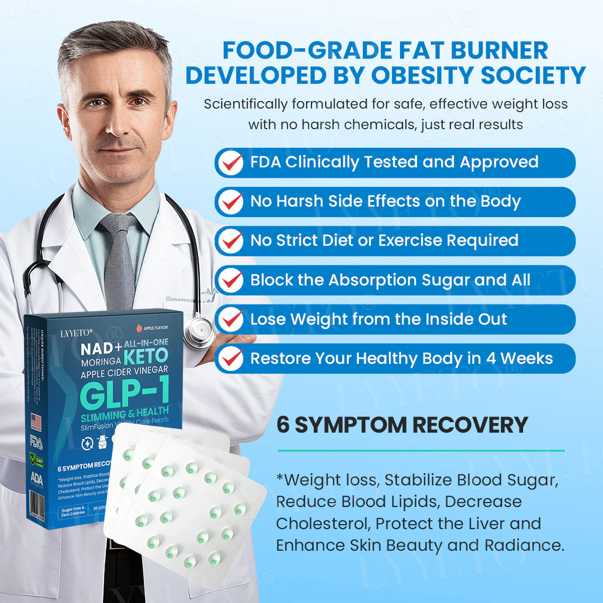 “I suffer from both obesity and diabetes, and I’ve been getting GLP-1 treatment at the hospital. You might be wondering why I suddenly switched to using the Lyyeto® GLP-1 Slimming & Health SlimFusion Vitality Core Pearls. GLP-1, a naturally occurring hormone that helps regulate blood sugar, is definitely a great treatment. It works really fast—just a short time after injection, my appetite dropped, I lost weight quickly, and my blood sugar went down. But, as we all know, it’s tough to break old habits. On my scheduled injection days, I’d come up with all sorts of excuses to skip, which led to failed treatments. The cost, hunger, time conflicts, or even something as simple as it raining outside would keep me from going. But the GLP-1 and NAD+ SlimFusion Vitality Core Pearls are perfect for someone like me who struggles with inertia. I can use it easily at home, and the effects last, keeping my appetite in check. What’s even better is that it’s really affordable, and anyone can use GLP-1 to help lose weight and keep their blood sugar in check!