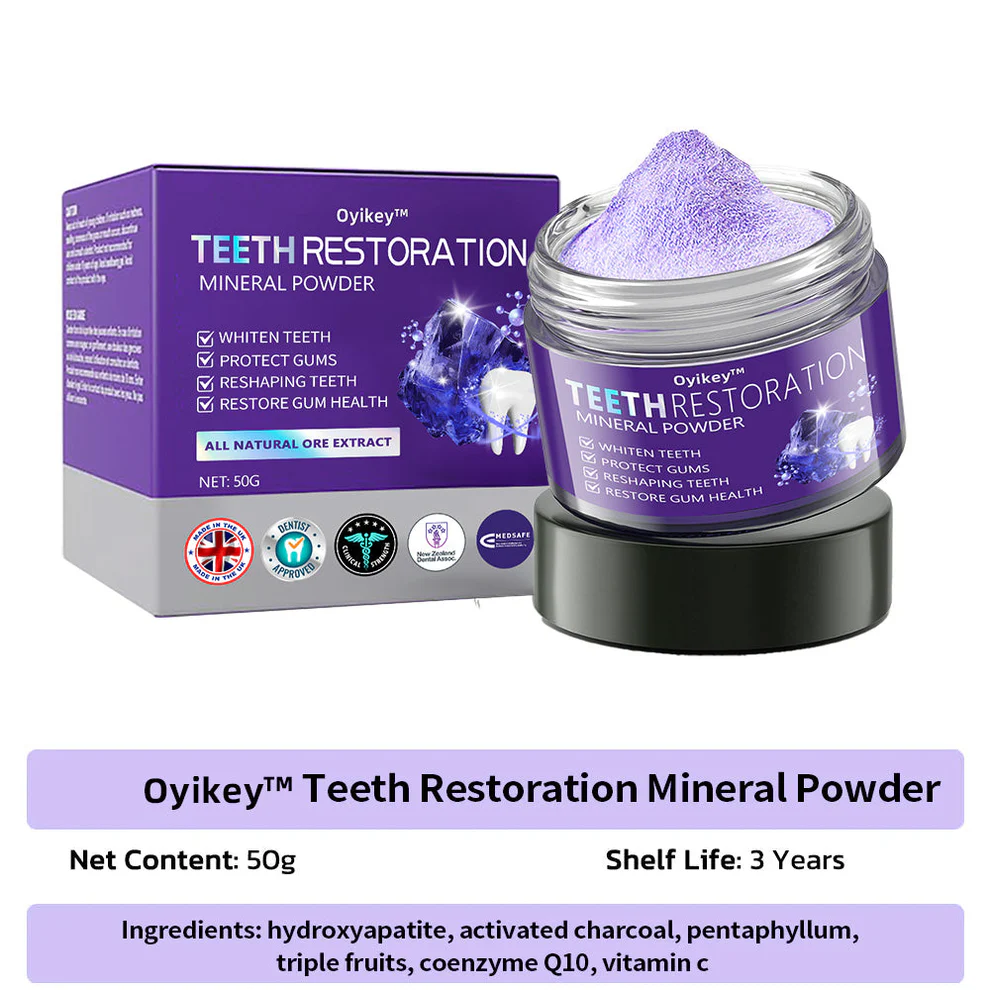 Oyikey™ Mineral Tooth Restoration Powder promotes natural tooth repair by stimulating dentin formation, helping to regenerate the tooth germ for a healthier, stronger smile.