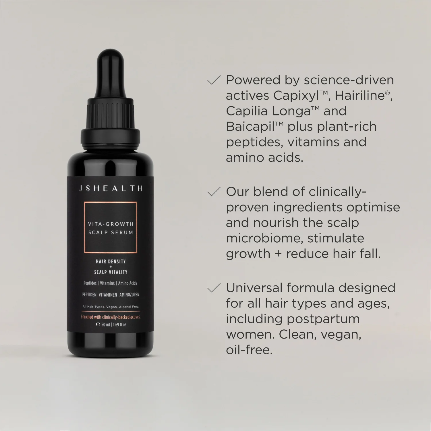 Did you know your best hair ever starts with a healthy scalp? Restore your hair confidence with this multi-peptide, plant active-rich and vitamin-infused serum. Formulated with7 clinically-backed ingredients at scientifically-proven levels for efficacy for denser, fuller-looking hair with every drop.