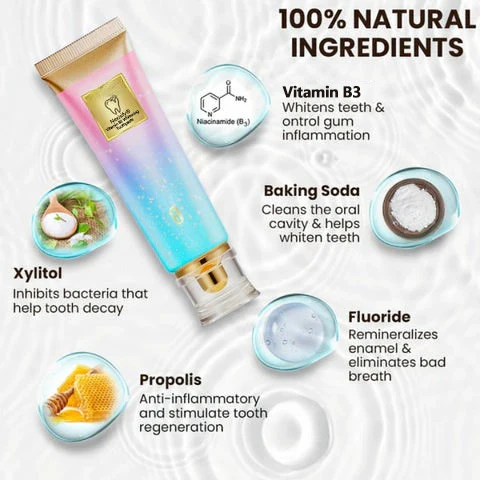 Discover Vitamin B3 Whitening Toothpaste, a safe and natural daily solution for overall oral health. Experience the fresh and energizing flavors that leave your mouth feeling invigorated, while its probiotic formula promotes a brighter smile and a healthier mouth.